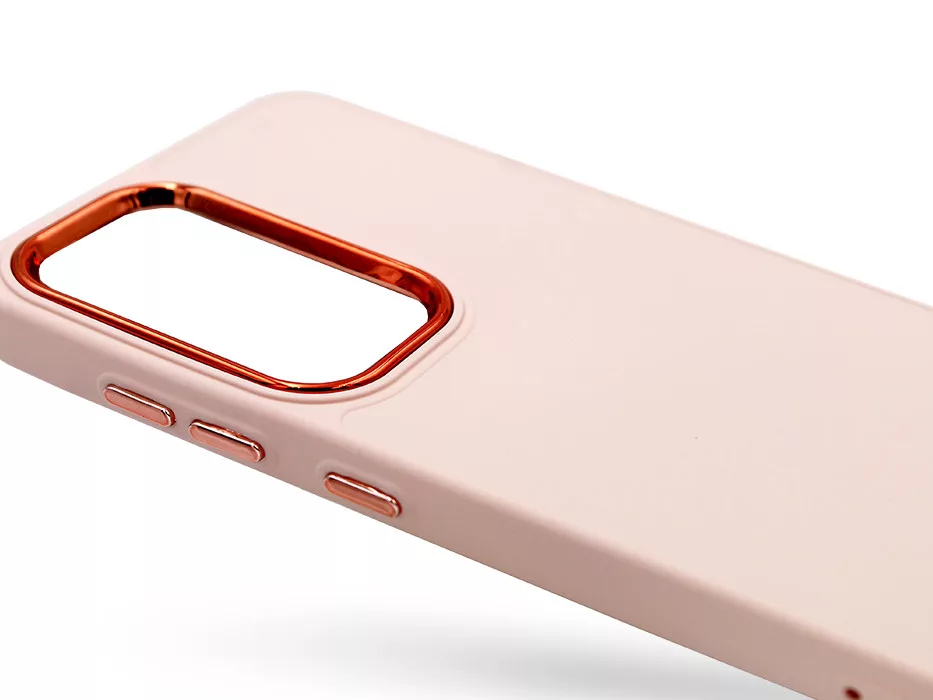- Megerősített élekkel, puha TPU anyaggal és a kamerasziget körüli megemelt kerettel rendelkezik, amely színes galvanizált bevonattal bevont PC-ből készült.