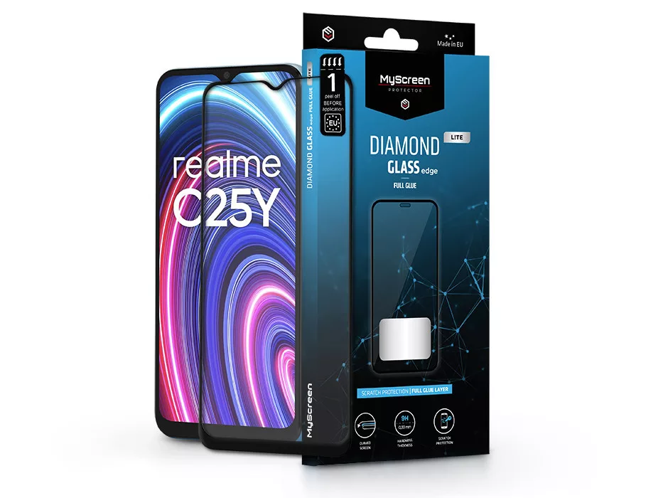 Realme C25/C25Y edzett üveg képernyővédő fólia - MyScreen Protector Diamond Glass Lite Edge2.5D Full Glue - fekete