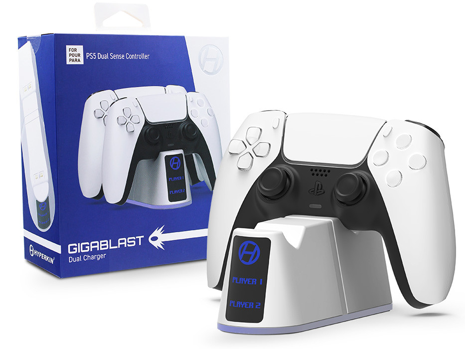 - Töltsön akár két PS5® DualSense kontrollert kevesebb mint három óra alatt a Gigablast kettős töltődokkolóval.
