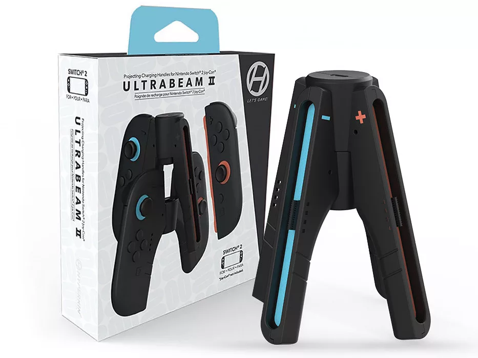 - A HYPERKIN UltraBeam II Joy-Con projektoros töltő-markolat egyszerre kínál kényelmesebb fogást és praktikus töltési lehetőséget a Nintendo Switch 2 Joy-Con kontrollerekhez.