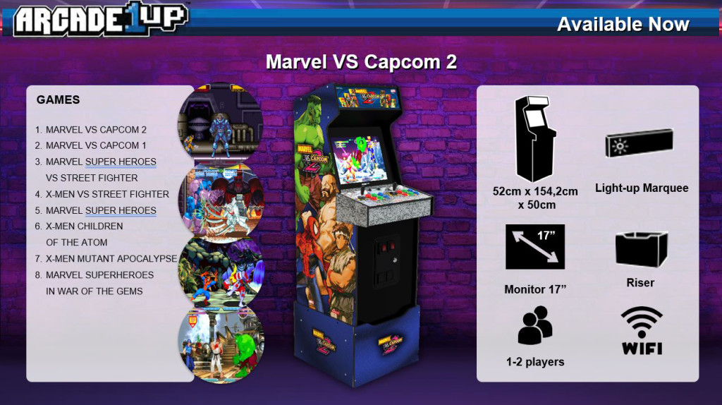 - Ez az epikus játékgép 8 klasszikus címet tartalmaz, köztük a Marvel vs Capcom II™-t, a Marvel vs Capcom I™-t, a Marvel Super Heroes vs Street Fighter™-t, az X-Men vs Street Fighter™-t, a Marvel Super Heroes™-t, az X-Men Children of the ATOM™-ot, az X-Men Mutant Apocalypse™-t és a Marvel Superheroes in War of the Gems™-et és még sok mást!
