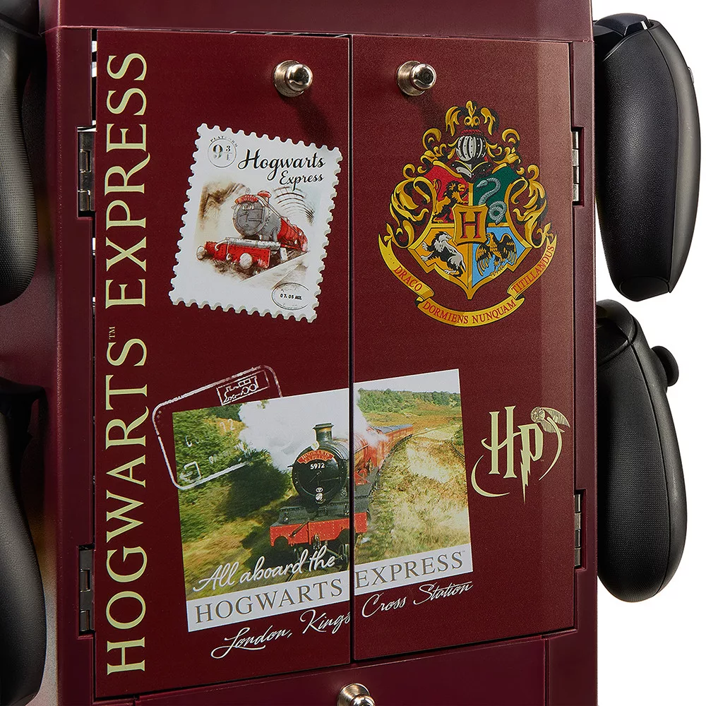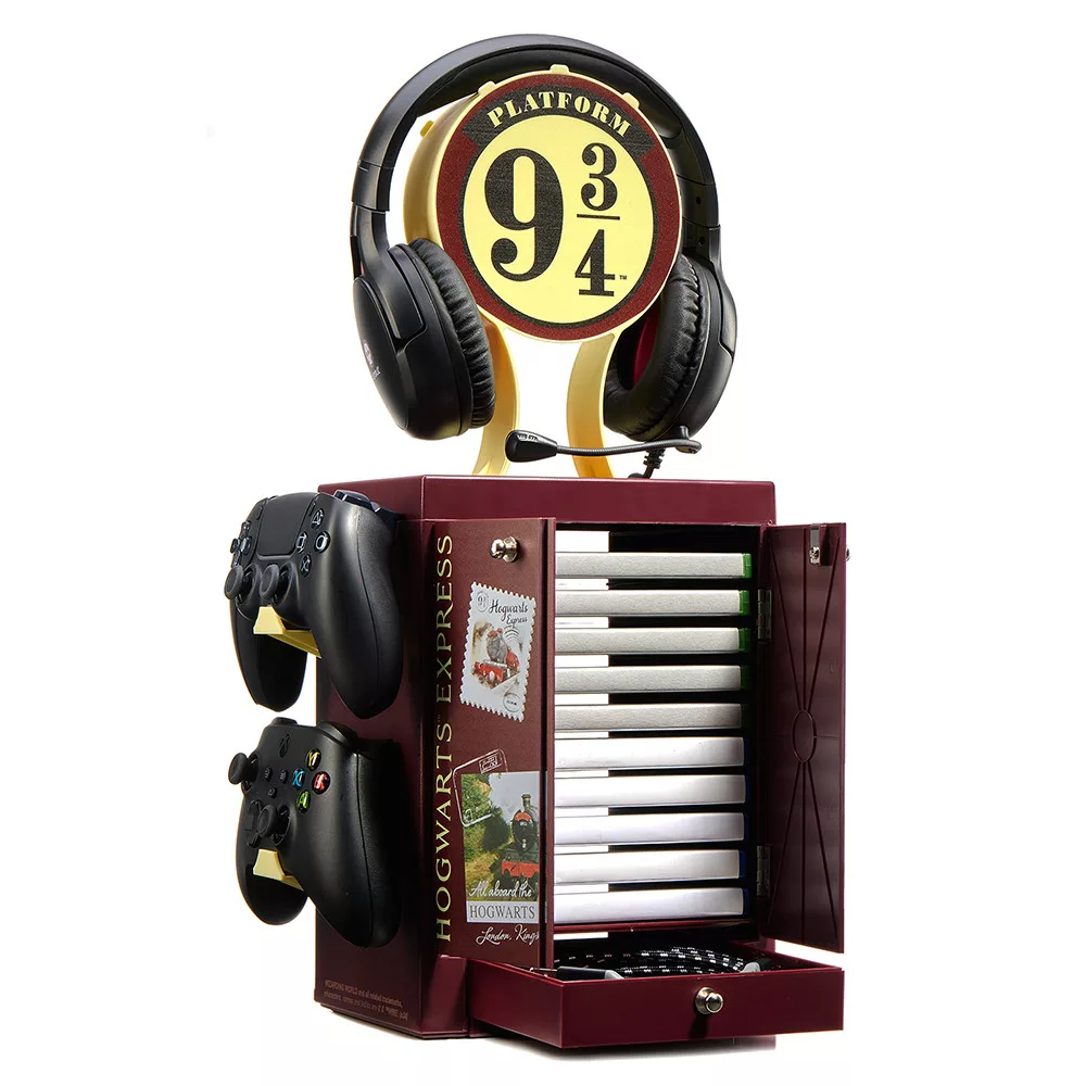 - Ideális játékkiegészítő Harry Potter rajongóknak, akik szeretnék rendben tartani varázslóvilágukat; ez a hivatalos szekrény az ikonikus mozdony stílusát követi, és a fejhallgató-tartón az ikonikus 9 ¾-es vágány logója látható, az ajtókon pedig a sorozat különböző képei láthatók.