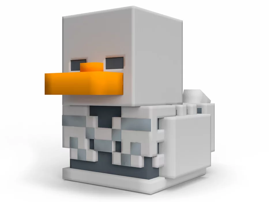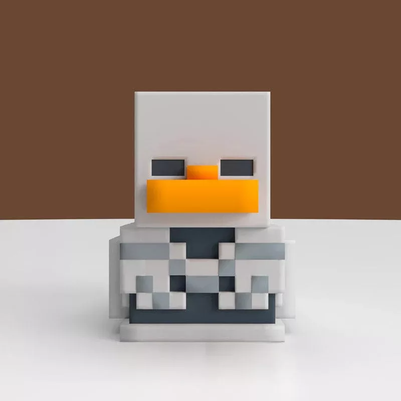 - Ez a Minecraft-szereplő egy kompakt cosplay játék kacsa formájában jelenik meg, jellegzetes pixelizált íjával és üres tekintetével, most pedig imádnivaló mini formában.