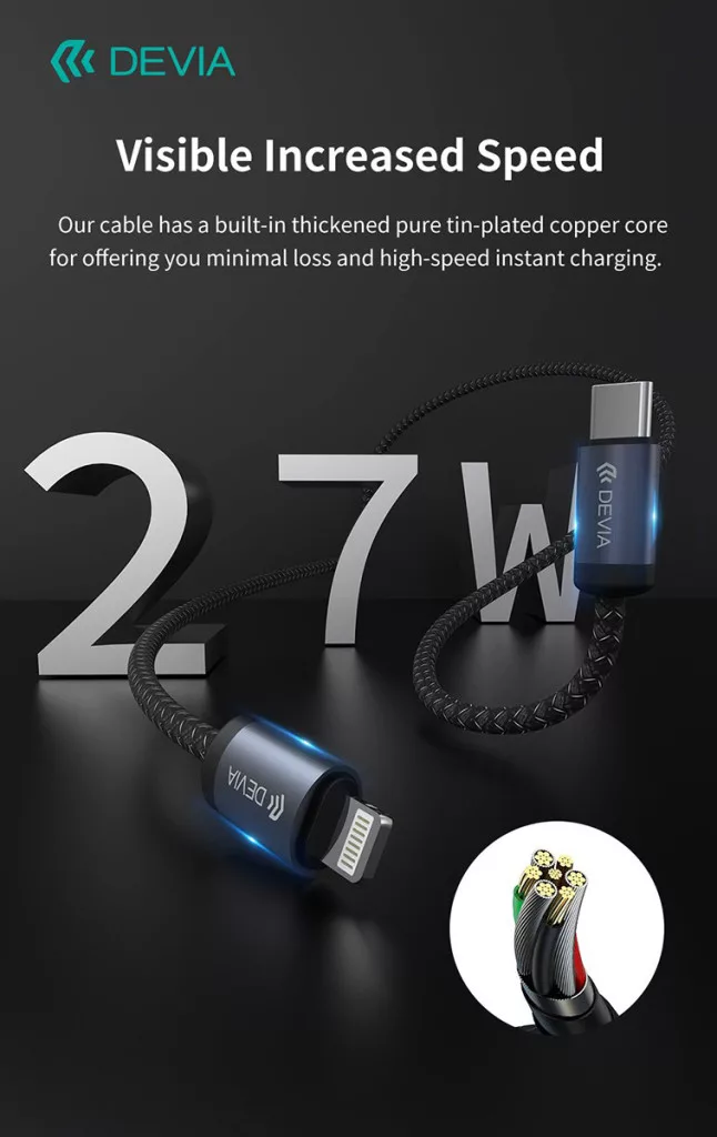 - Kábelünk beépített, megvastagított, tiszta ónozott rézmaggal rendelkezik, amely minimális veszteséget és nagy sebességű azonnali töltést kínál Önnek.