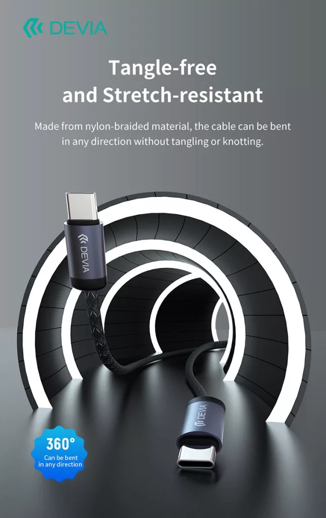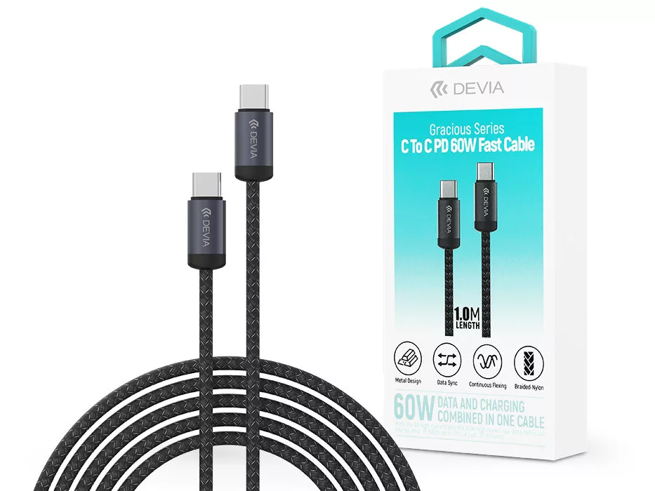 Devia Gracious Series 60W PD Type-C/Type-C adat- és töltőkábel 1m - fekete
