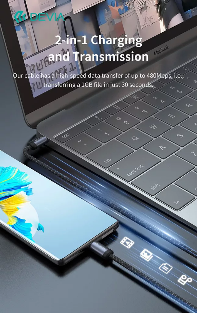 - Kábelünk nagy sebességű, akár 480 Mbps sebességű adatátvitellel rendelkezik, 1 GB-os fájl átvitelét mindössze 30 másodperc alatt elvégez.