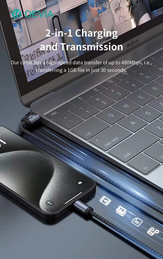 - Adatkábelünk 2A nagyáramú gyorstöltést kínál, és javítja a töltés hatékonyságát a produktívabb munkavégzés érdekében.