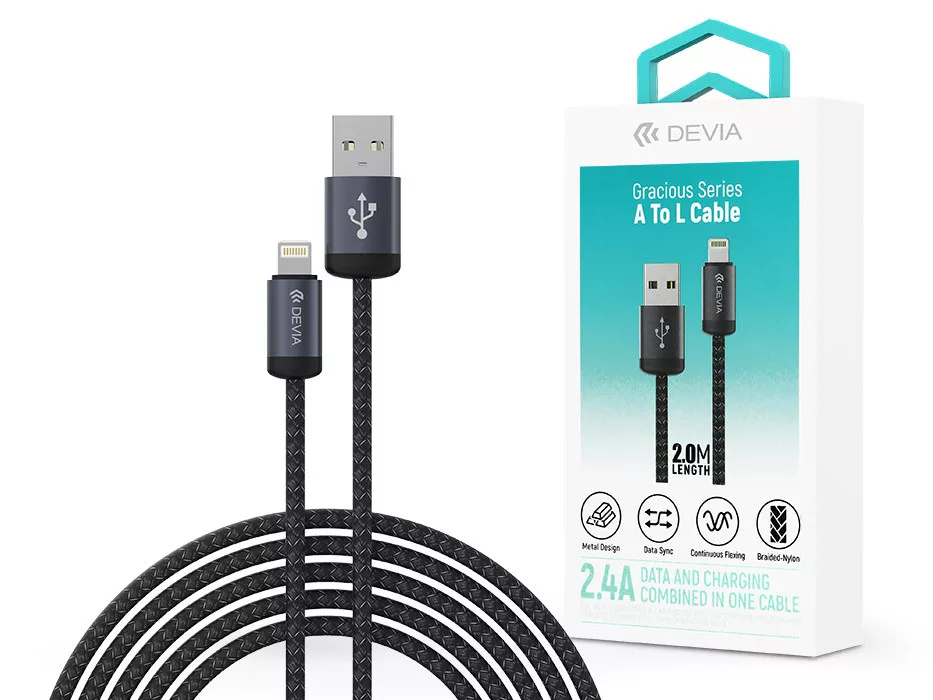 Devia Gracious Series v2 12W USB/Lightning adat-és töltőkábel 2m - fekete