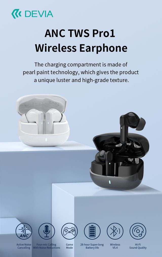 Devia ANC TWS-Pro1 Bluetooth sztereó headset - fehér