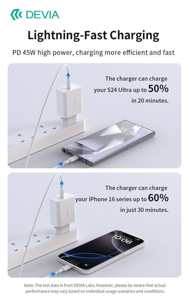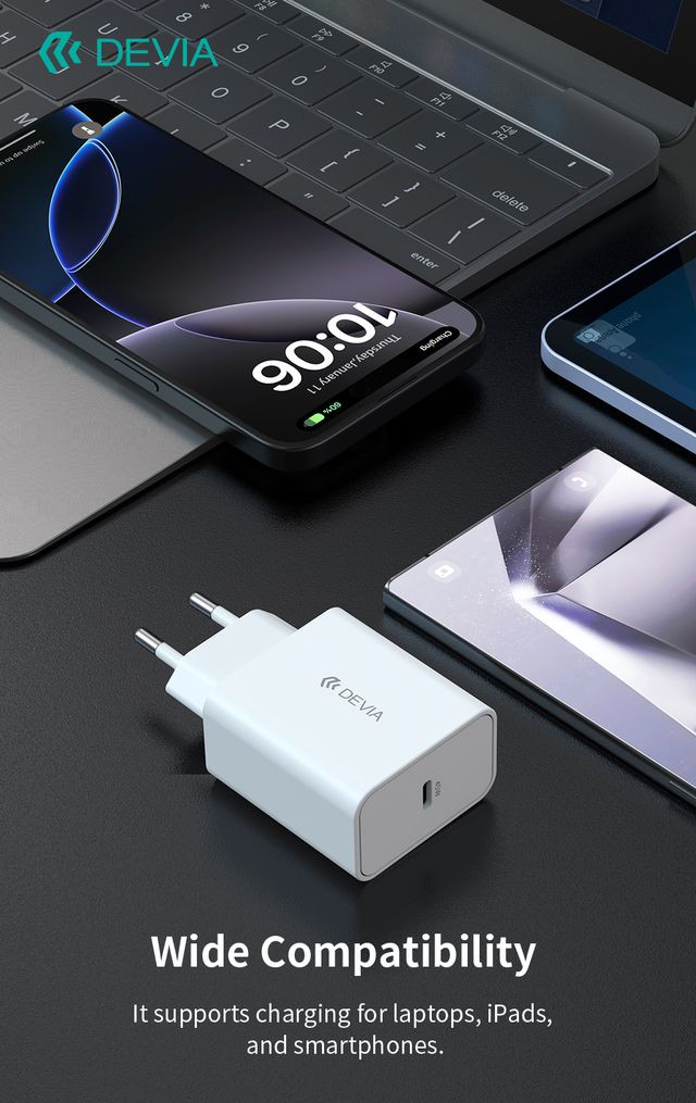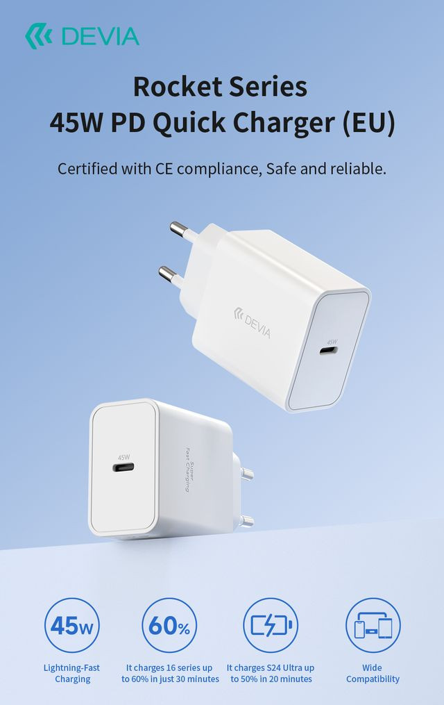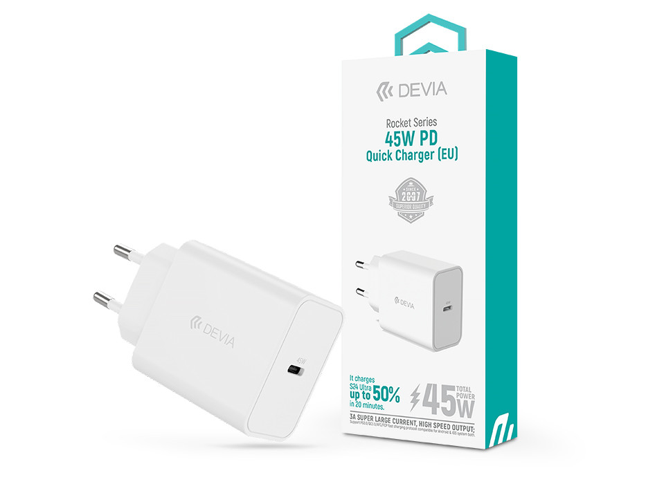 Devia Rocket Series 45W PD hálózati gyorstöltő adapter Type-C - fehér
