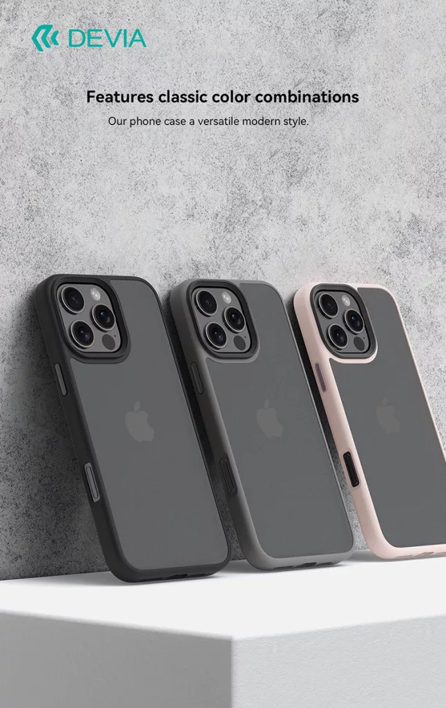 Devia Pino Series ütésálló tok - Apple iPhone 16 Pro - fekete
