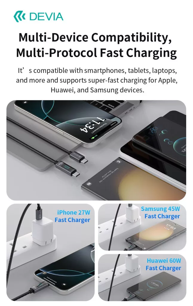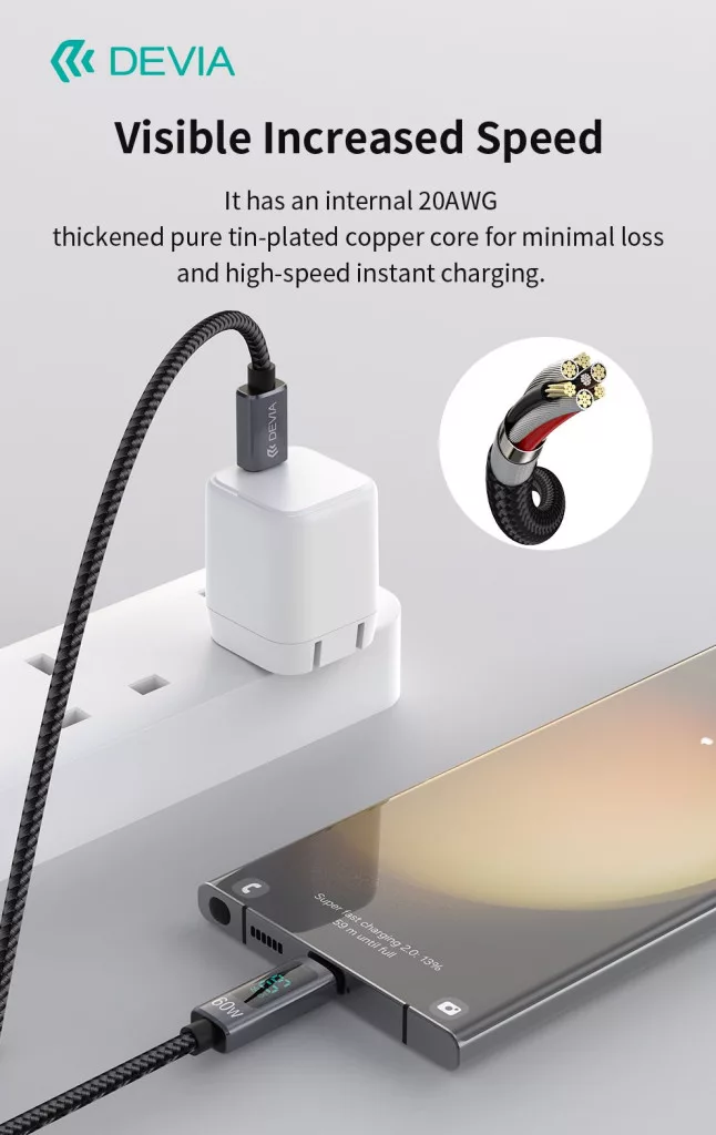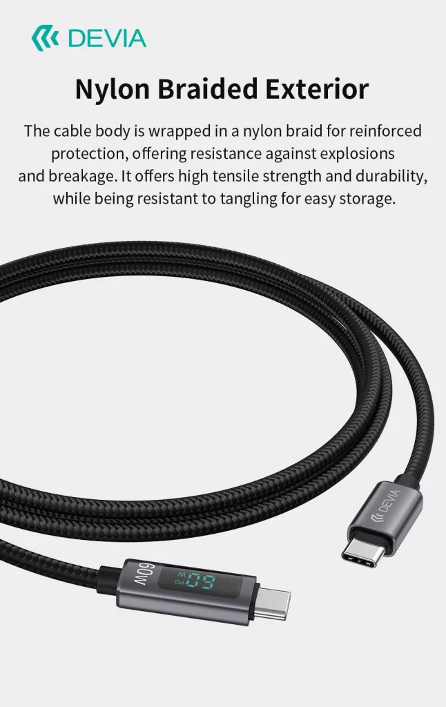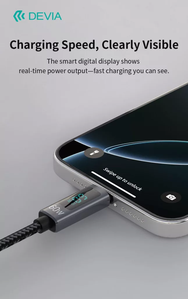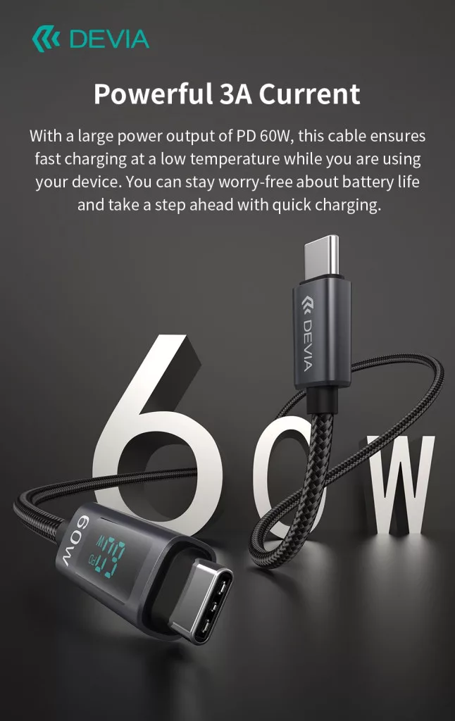 Devia Extreme Speed Series 60W PD Type-C/Type-C kijelzős adat- és töltőkábel 1.2m - fekete