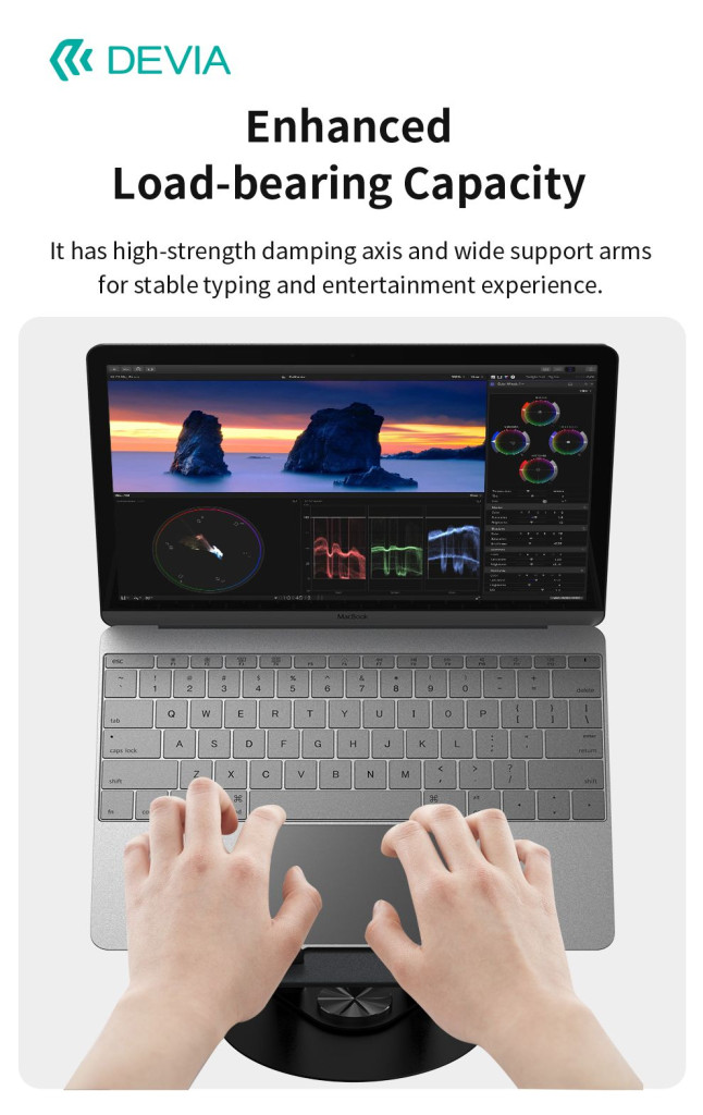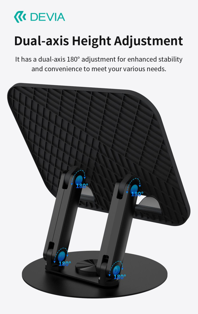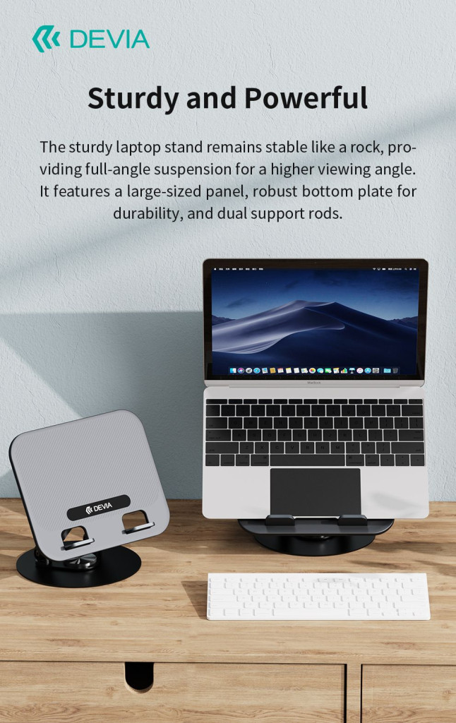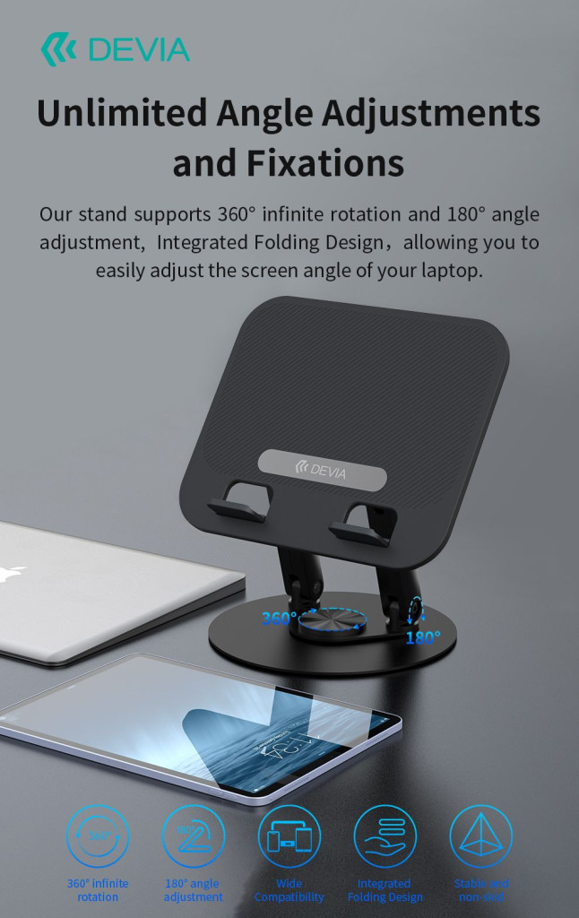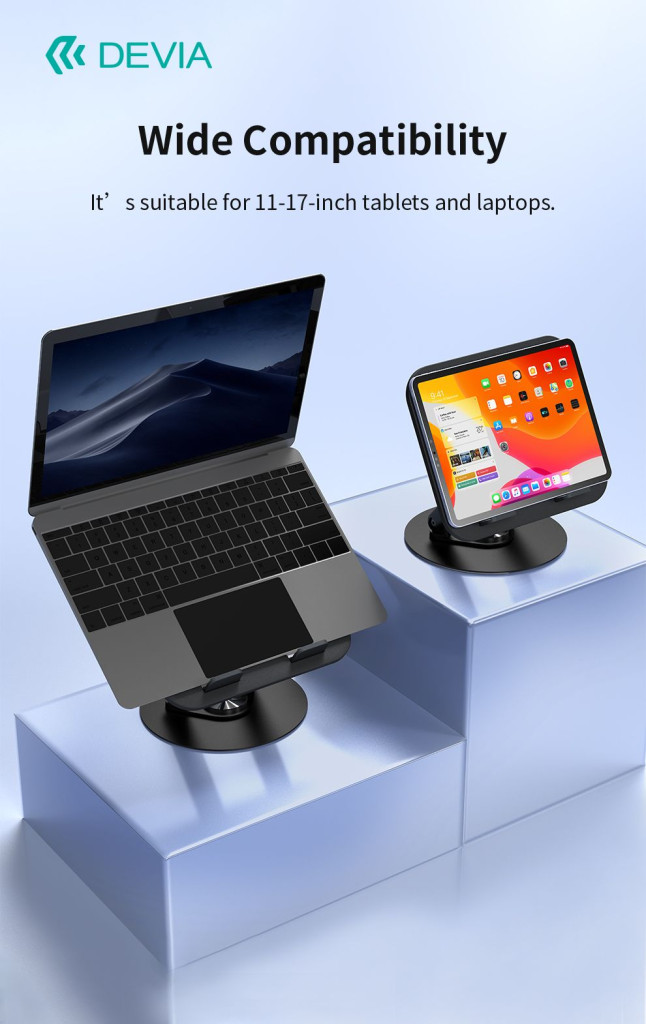 - A Devia 360° forgó állvány az irodában a legjobb barátod! Úgy tervezték, hogy laptopodat vagy táblagépedet az asztalodon tartsa, így kényelmesen és gyorsan használhatod eszközeidet.