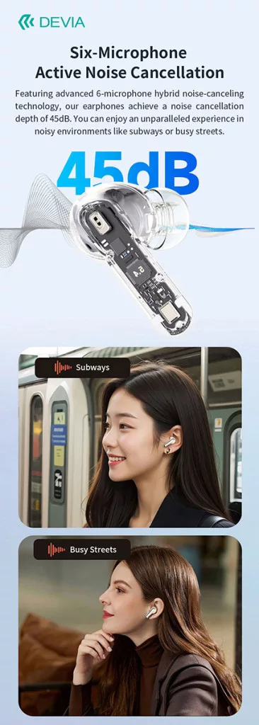 - A fejlett 6 mikrofonos hibrid zajszűrő technológiával fülhallgatóink 45 dB zajszűrési mélységet érnek el. Páratlan élményt élvezhet olyan zajos környezetben, mint a metró vagy a forgalmas utcák.