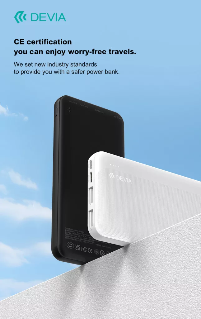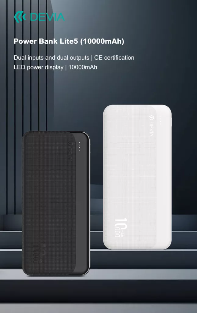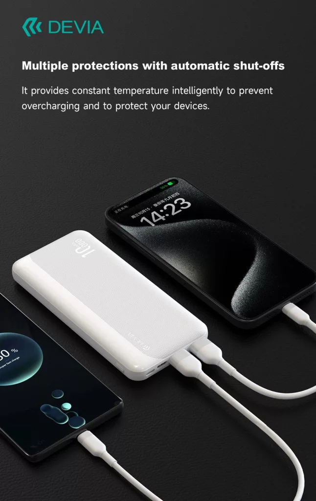 Devia Kintone Series Lite 5 - 2xUSB + Type-C + microUSB - powerbank - 10.000 mAh - fehér