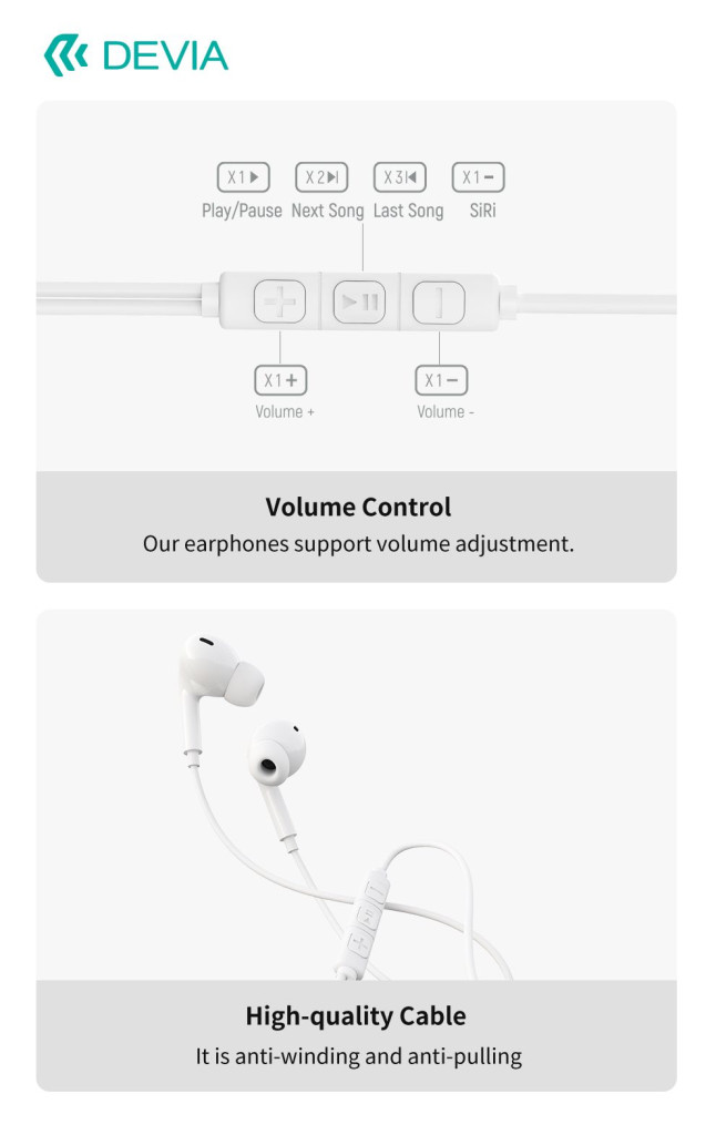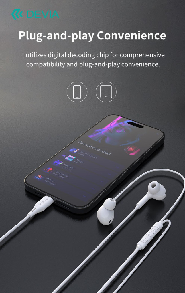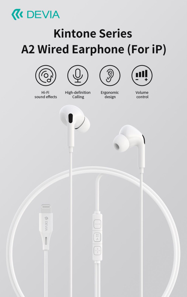 Devia Kintone Series A2 sztereó fülhallgató Lightning - fehér