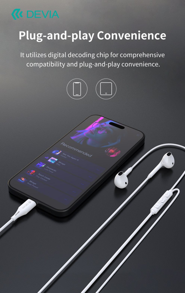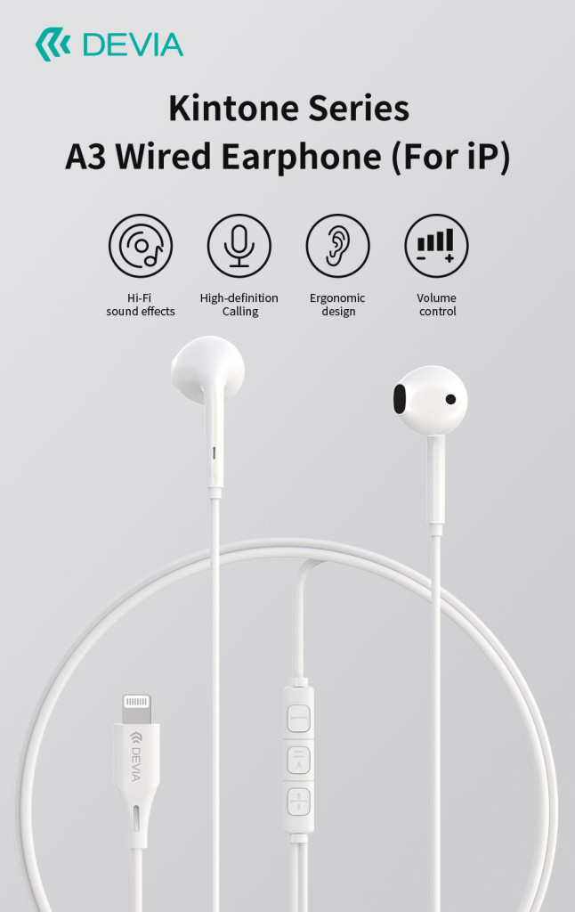 Devia Kintone Series A3 sztereó fülhallgató Lightning - fehér