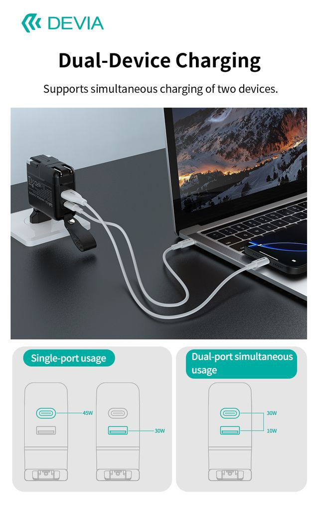 - USB-C + USB-A: 30W + 10W