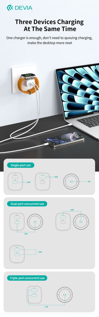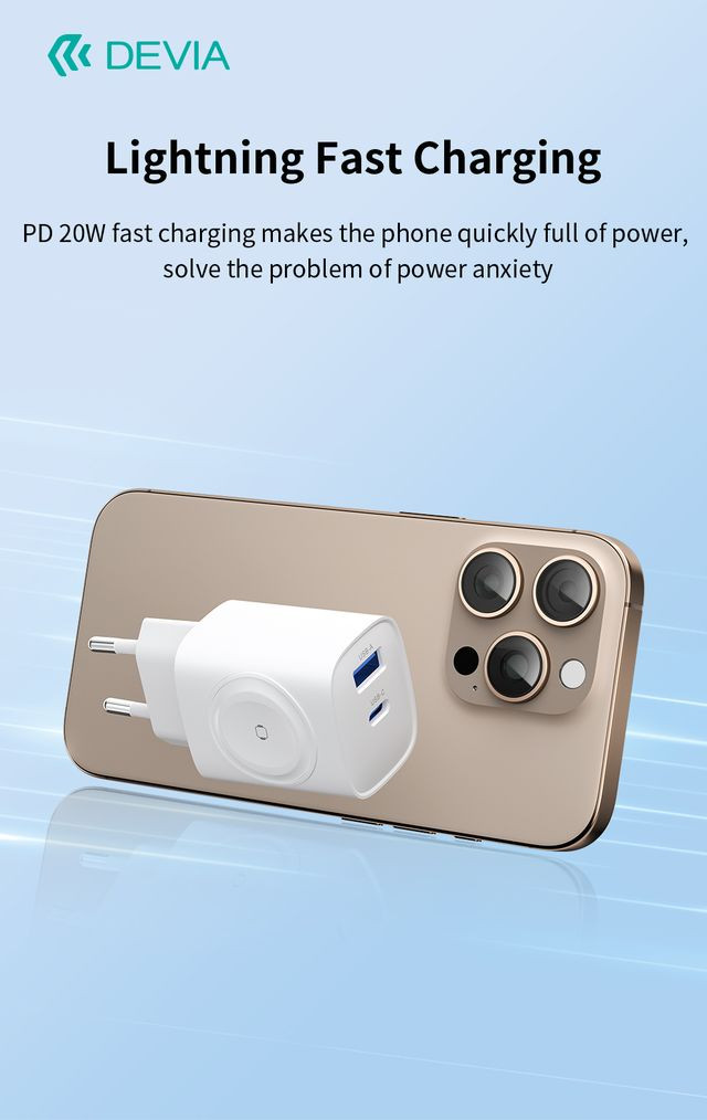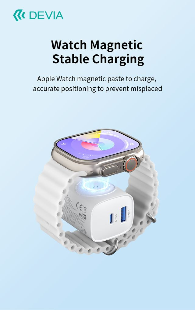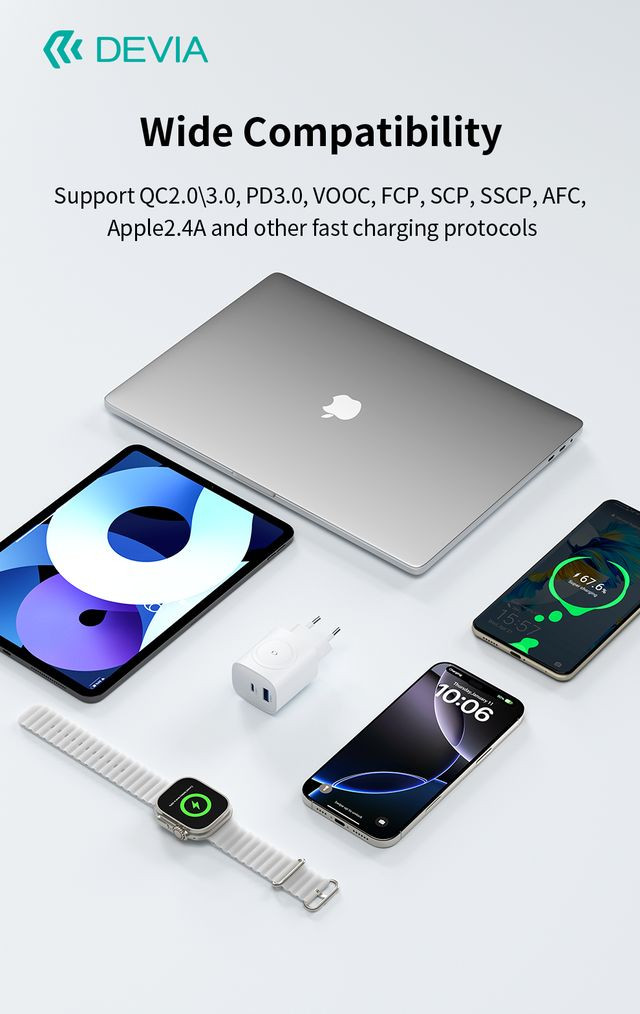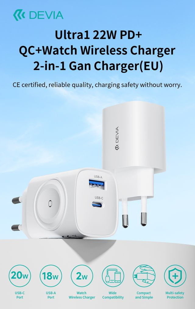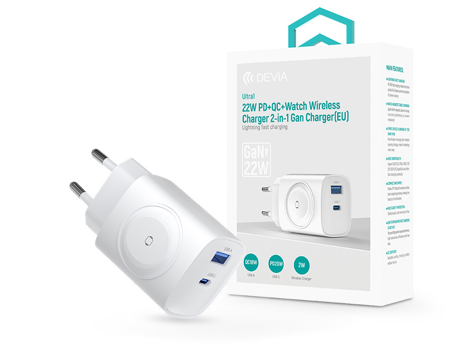 Devia Ultra1 22W PD+QC+Apple Watch 2in1 hálózati gyorstöltő adapter - fehér