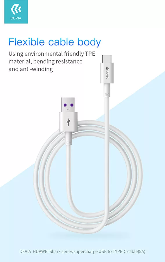Devia Smart Series Shark USB/Type-C töltő- és adatkábel 1,5m - 5A - fehér