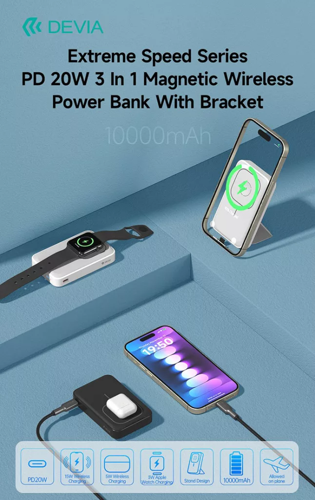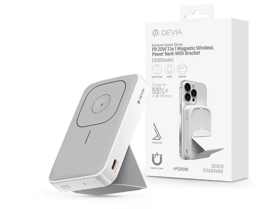 Devia Extreme Speed Series 3in1 Magnetic Wireless PD 20W powerbank/állvány - 10.000 mAh - fehér