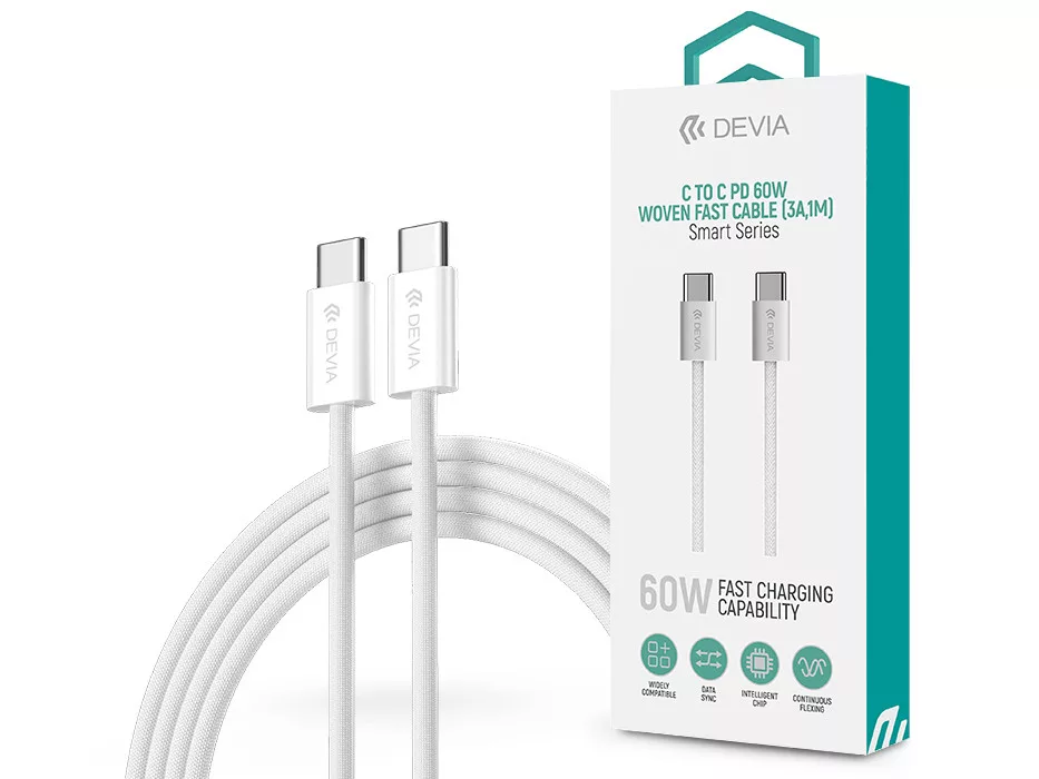 Devia Smart Series 60W PD Type-C/Type-C adat-és töltőkábel 1m - fehér