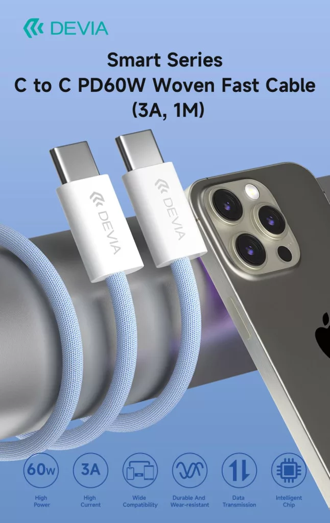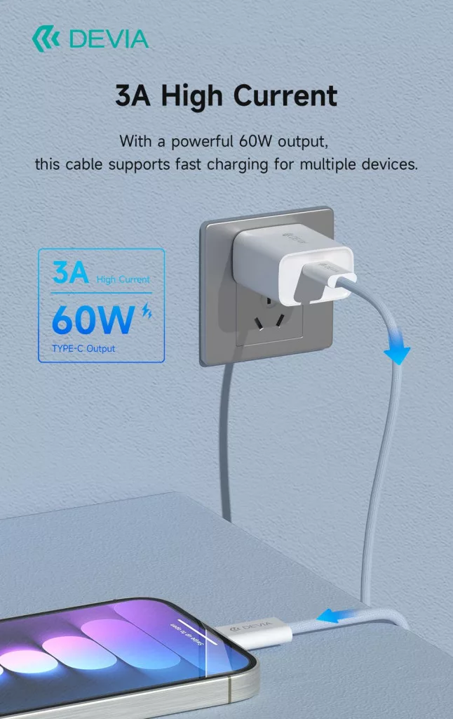 - A nagy teljesítményű 60W-os Type-C csatlakozóval rendelkező kábel, amely több eszköz gyors töltését is támogatja.