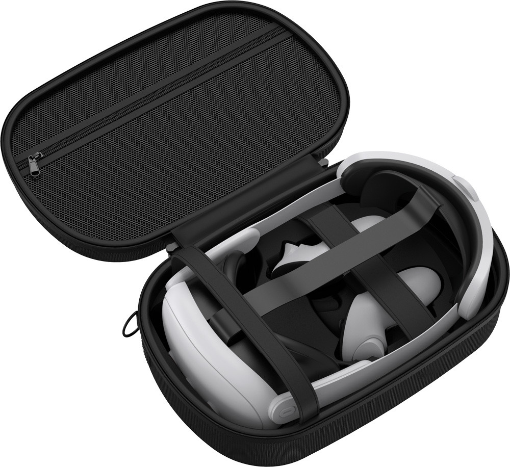 - A belső kialakítás puha, párnázott anyagból készült, amely óvja a VR headsetet és kiegészítőit a sérülésektől.