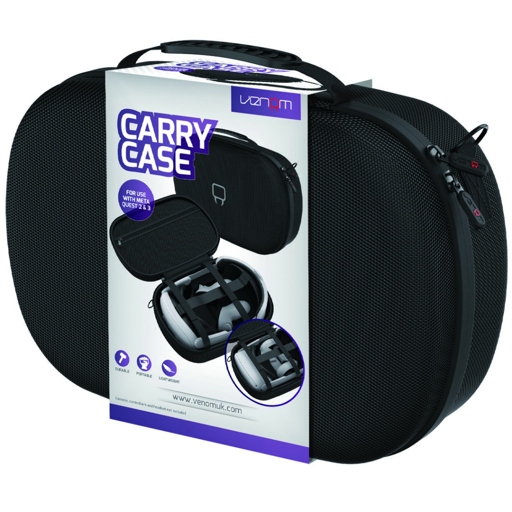 - A VENOM hordozható táska a Meta Quest 2 és Meta Quest 3 VR headsetekhez készült, hogy biztonságos és kényelmes szállítást biztosítson minden szükséges tartozék számára.